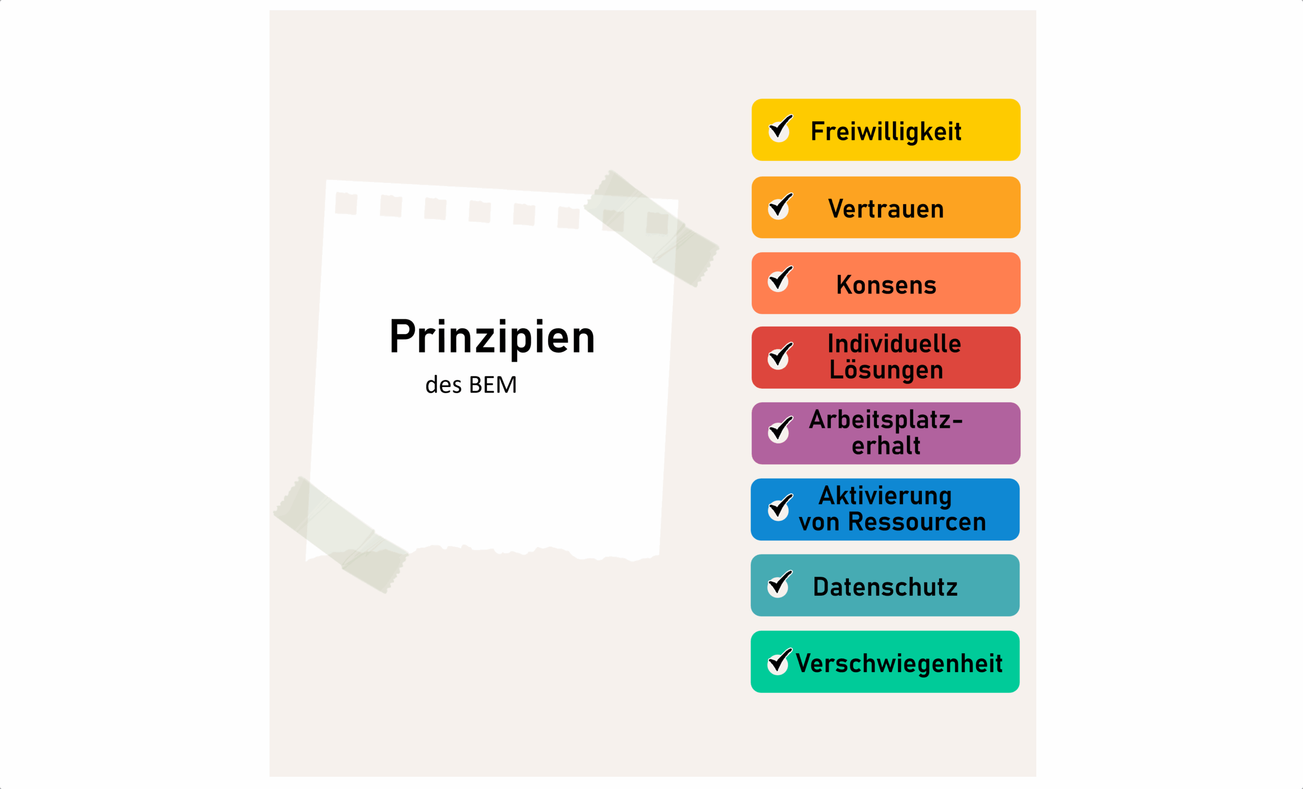 Das Betriebliche Eingliederungsmanagement (BEM) ist ein Angebot der Dienststelle, um Ihre Rückkehr an den Arbeitsplatz nach längeren Krankheitsphasen zu unterstützen. Dieses Angebot ist freiwillig. Sie entscheiden, ob Sie es in Anspruch nehmen möchten.